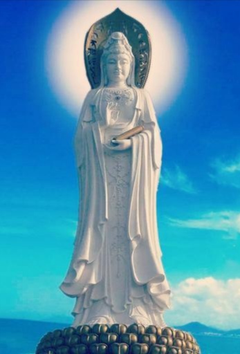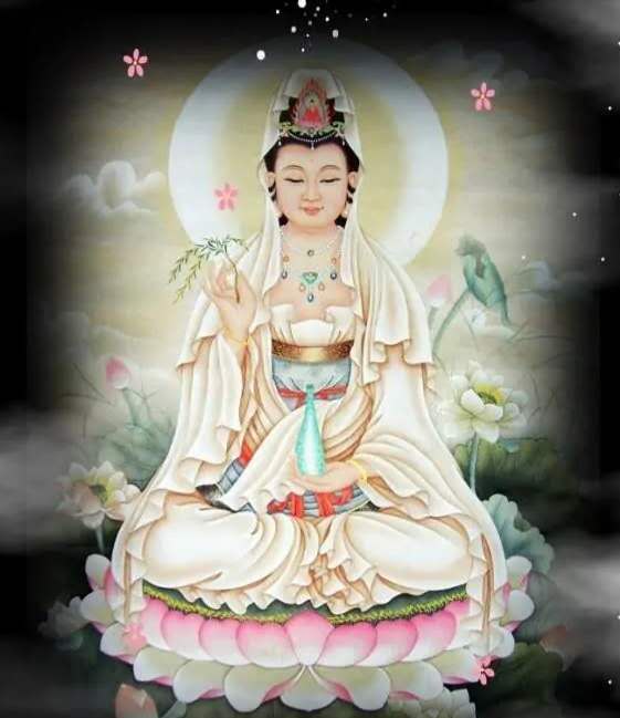 “观音菩萨妙难酬,清净庄严累劫修;浩浩红莲安足下,湾湾秋月锁眉头;瓶中甘露常遍洒,手内杨枝不计秋;千处祈求千处应,苦海常作渡人舟”,观世音菩萨于娑婆世界利益众生,受苦众生一心称名,观世音菩萨即时观其音声,应机缘而现不同化身,随缘救度众生。