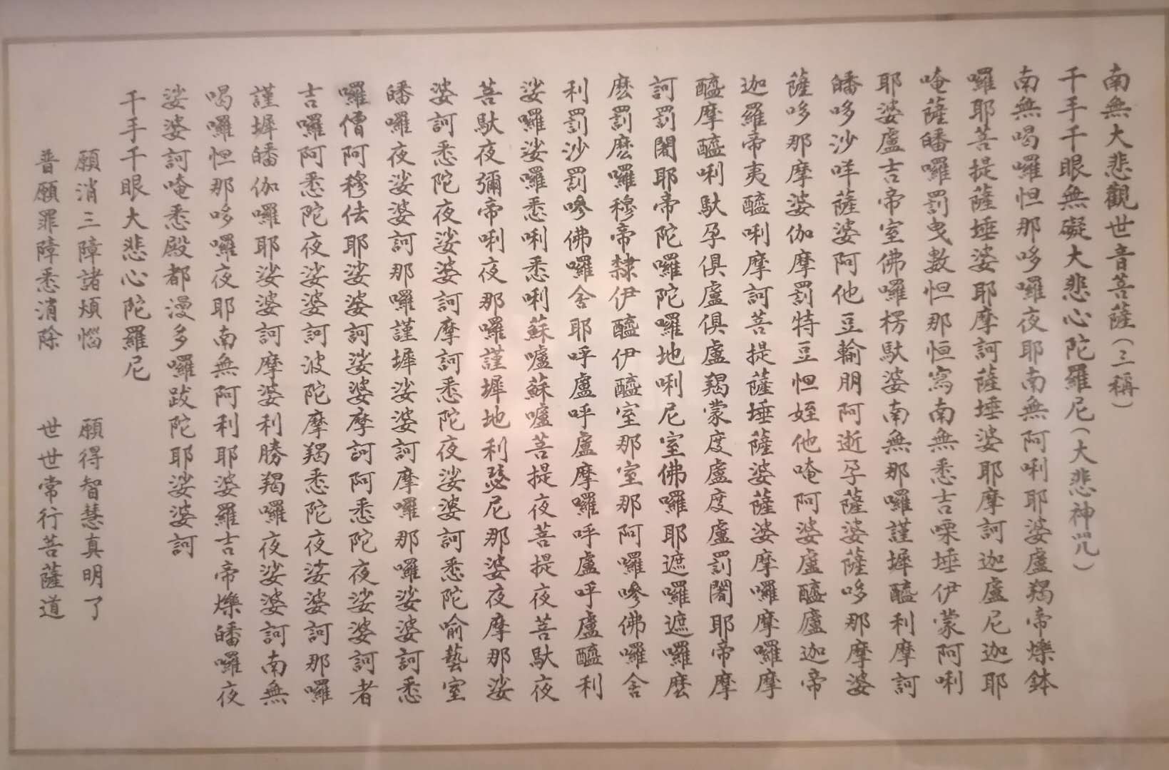 佛经中,与观世音菩萨关系密切的经典主要有《观世音菩萨普门品》(源自《妙法莲华经》卷七),还有佛门里著名的“大悲咒”,又称“大慈大悲广大灵感圆满无碍大悲心陀罗尼”。